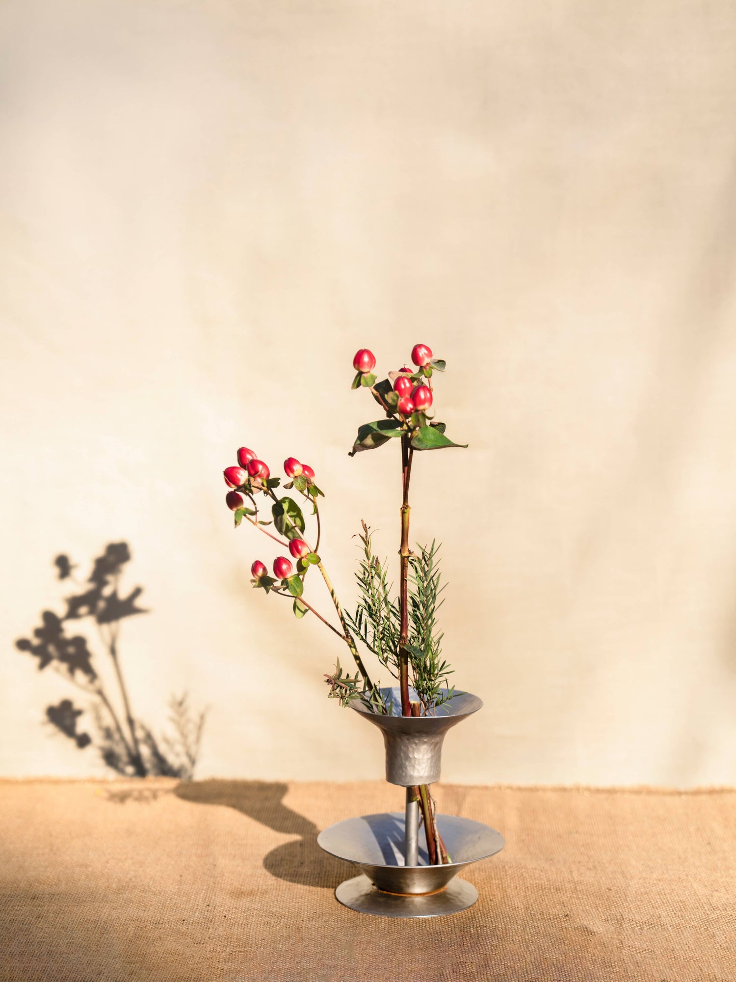 Crafted from Stainless Steel with a hammered texture and pewter finish, our Floral Stem Holder is perfect for small bouquets. Also available in a larger size, this durable stem holder securely keeps stems in place, adding a touch of elegance to any floral arrangement.
