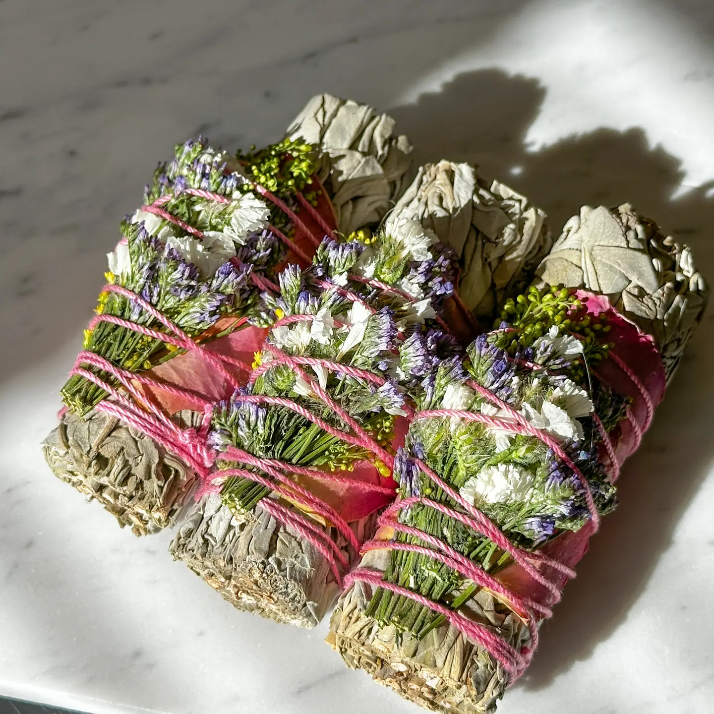 Sage is a great tool to use to energetically cleanse yourself and space. Welcome in the new season with these beautifully hand-tied wildflower sage wands. Our fragrant sage burns well and smells fantastic.